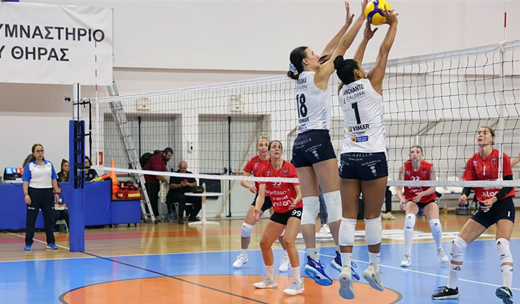 Στο πρώτο παιχνίδι η ομάδα της Σαντορίνης πήρε τη νίκη με 3-2 σετ αλλά όλα παραμένουν ακόμα ανοιχτά. Ο Α.Ο. Θήρας προκρίνεται με νίκη με οποιοδήποτε σκορ, ο Πανιώνιος χρειάζεται νίκη με 3-0 ή 3-1 σετ για να πάρει απευθείας το εισιτήριο, ενώ αν νικήσει 3-2 σετ θα χρειαστεί οι δύο ομάδες να δώσουν και χρυσό σετ.