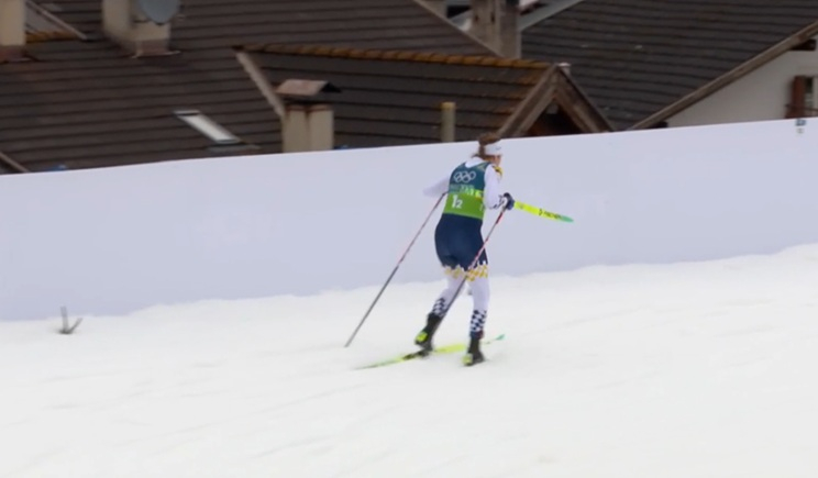 Συγκλονιστική στιγμή στο αγώνισμα, μέχρι και άνθρωπος από το τεχνικό επιτελείο της Σουηδίας έπεσε στην προσπάθειά του να αντικαταστήσει το πέδιλο της Άντερσον.