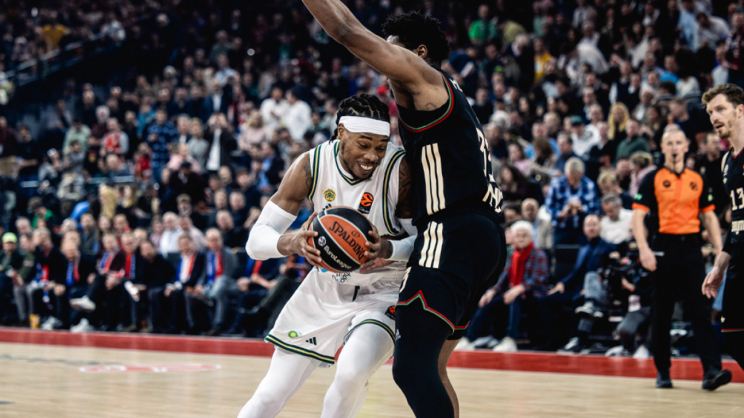 Αποτέλεσμα; Το ημίχρονο να κλείσει στο 40-43 υπέρ του Παναθηναϊκού, έχοντας τον Χολμς στους 11 πόντους (5/6δίπ.), τον Όσμαν στους 9 πόντους (1/4διπ., 2/4τρ., 1/2β., 3ριμπ., 2ασ., 2κλ.) και τον Γκραντ στους 8 πόντους (4/5διπ., 3ασ., 2ριμπ.) ενώ συνολικά οι «πράσινοι» είχαν μετρήσει 13/20 δίποντα, 5/11 τρίποντα, 2/4 βολές, 10-3 ριμπάουντ, 9 ασίστ, 5 κλεψίματα και 5 λάθη. Ενώ αντίστοιχα η Μπάγερν (Μάικ 8π., Ομπστ 7π., Γκέιμπριελ 6π.) είχε 12/19 δίποντα, 4/11 τρίποντα, 4/4 βολές, 10-4 ριμπάουντ, 11 ασίστ, 5 κλεψίματα και 7 λάθη.
