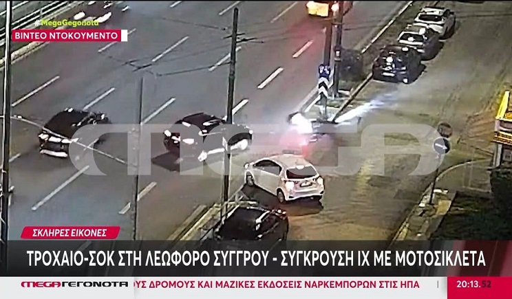 Σκληρές εικόνες: Τροχαίο - σοκ στη Λεωφόρο Συγγρού - Σύγκρουση ΙΧ με μοτοσικλέτα (Βίντεο)