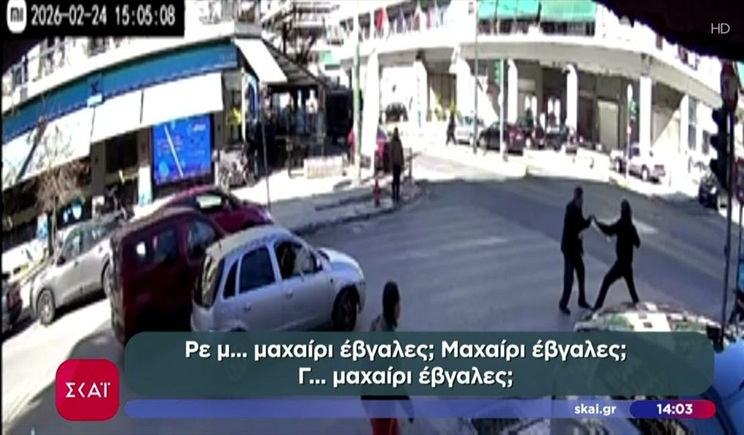 Στο βίντεο ακούγεται να φωνάζει ο 51χρονος στον οδηγό του αυτοκινήτου: «έβγαλες μαχαίρι ρε… θες να με σκοτώσεις με μαχαίρι;».