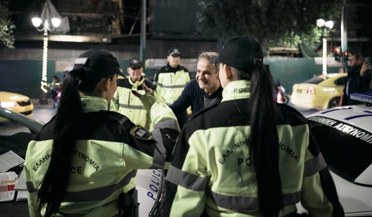 Ο Κυριάκος Μητσοτάκης συνομίλησε με τις γυναίκες και τους άνδρες της ΕΛ.ΑΣ. που βρίσκονταν σε υπηρεσία, τους συνεχάρη για το έργο τους και τους ευχαρίστησε για την άοκνη προσφορά τους, μέρα και νύχτα, καθ’ όλη τη διάρκεια του έτους.