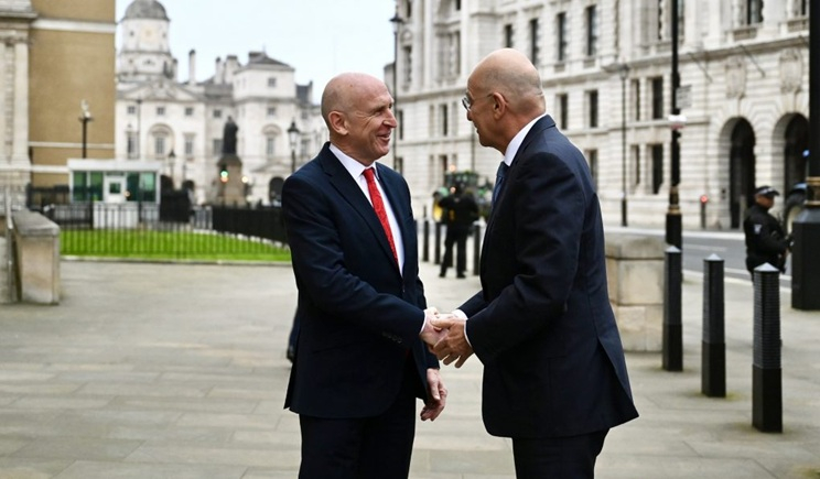 Στο πλαίσιο της επίσκεψής του στο Ηνωμένο Βασίλειο, ο κ. Δένδιας συναντήθηκε χθες, Δευτέρα 16 Μαρτίου 2026, με τον Σύμβουλο Εθνικής Ασφάλειας του Ηνωμένου Βασιλείου, Jonathan Powell, με τον οποίο συζήτησε για τη γεωπολιτική κατάσταση στη Μέση Ανατολή, το Ιράν, την Ουκρανία, καθώς και για τις ευρύτερες απειλές ασφαλείας.