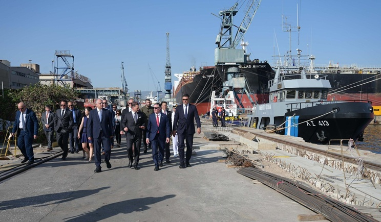 Ο Υπουργός Ναυτιλίας και Νησιωτικής Πολιτικής, Βασίλης Κικίλιας, συνόδευσε σήμερα το απόγευμα τον Υπουργό Εσωτερικών των Ηνωμένων Πολιτειών, Doug Burgum, κατά την επίσκεψή του στα Ναυπηγεία ONEX Ελευσίνας,