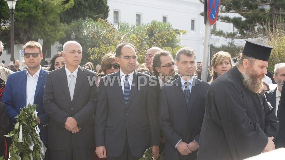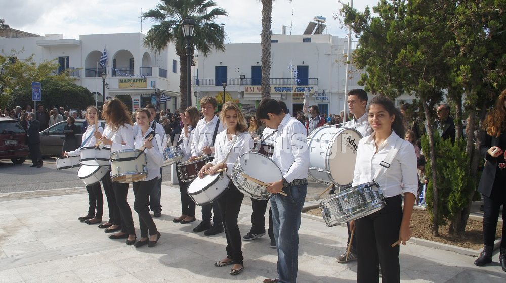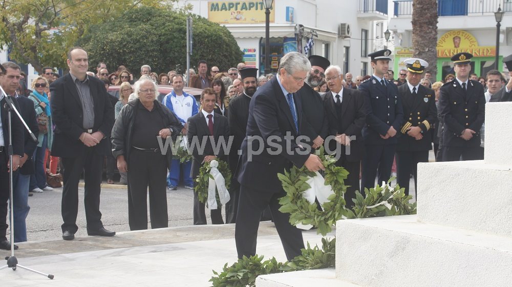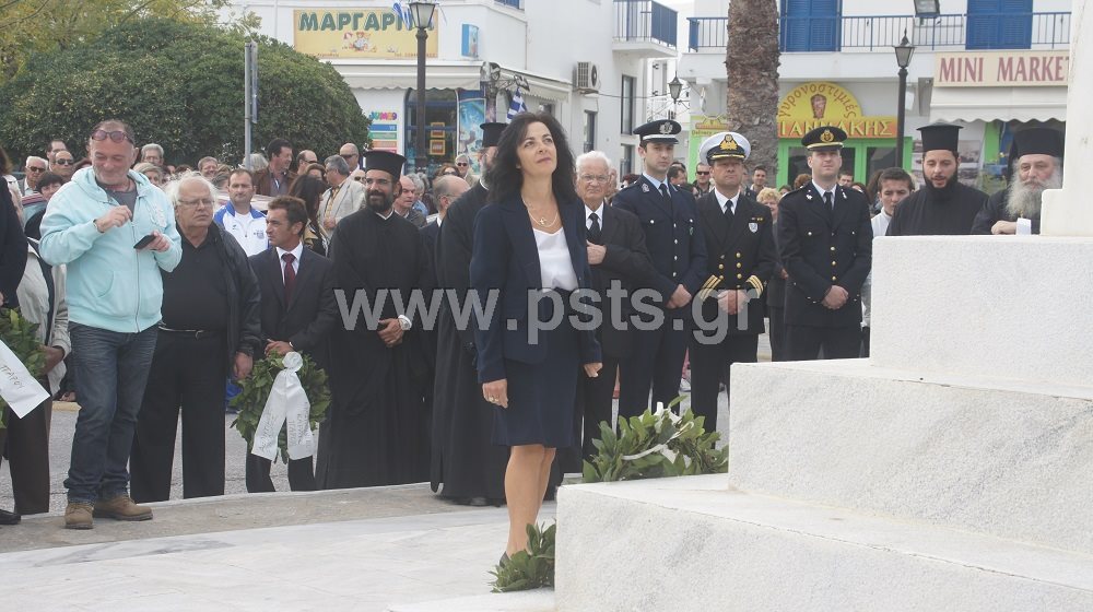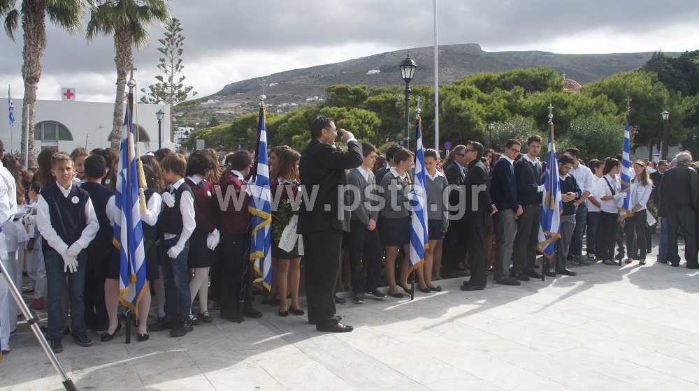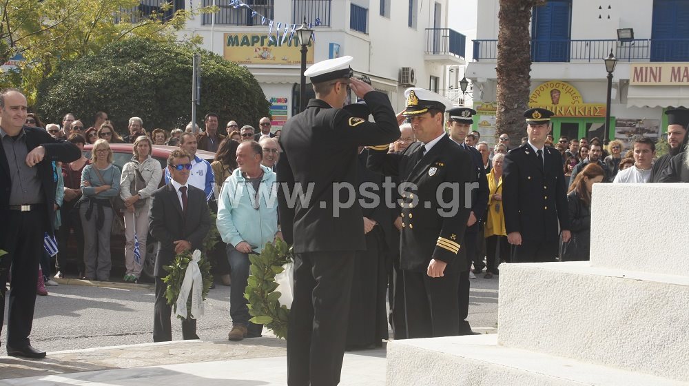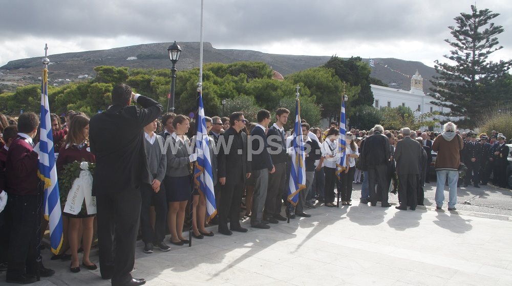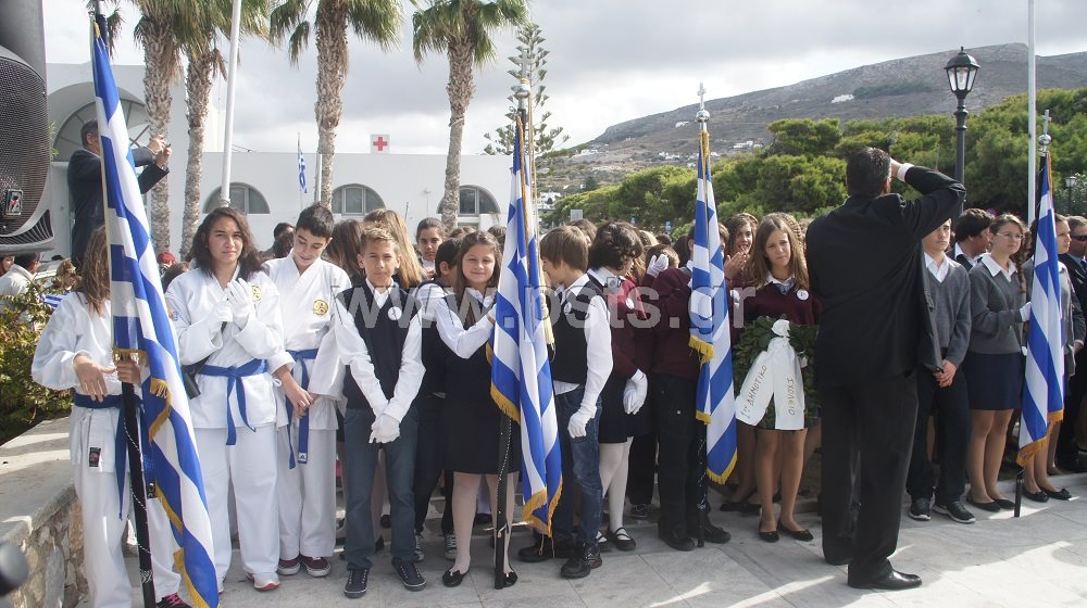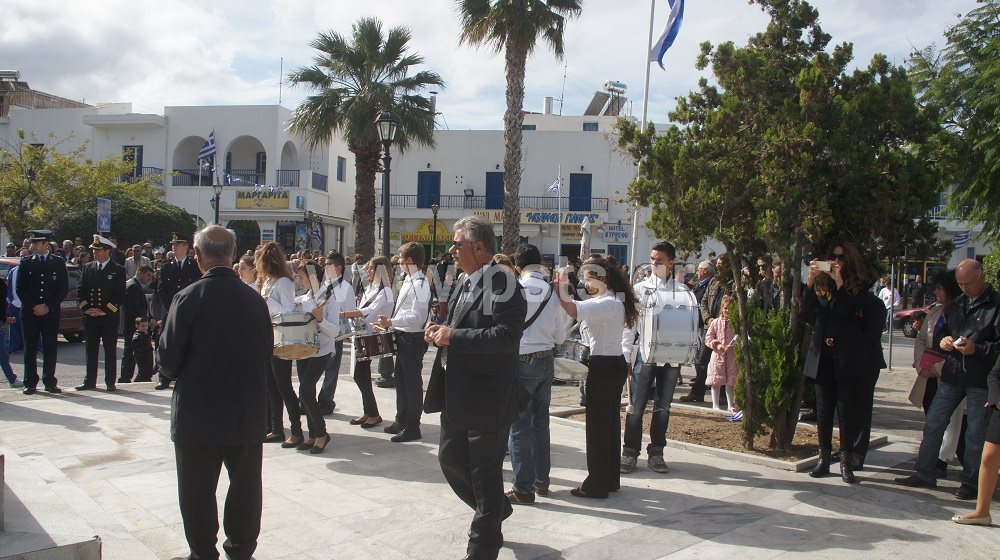 Το πρωί της Τρίτης 28 Οκτωβρίου τελέστηκε επίσημη δοξολογία τον Ιερό Ναό της Παναγίας της Εκατονταπυλιανής παρουσία εκπροσώπων τοπικών φορέων και αρχών και ακολούθησε επιμνημόσυνη δέηση και κατάθεση στεφάνων στο χώρο του Μνημείου των Πεσόντων.