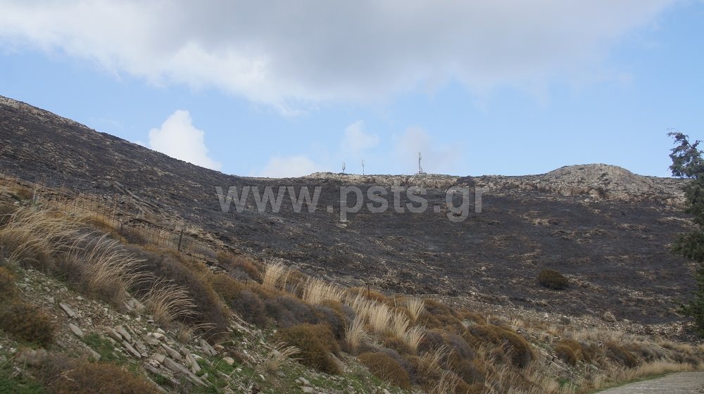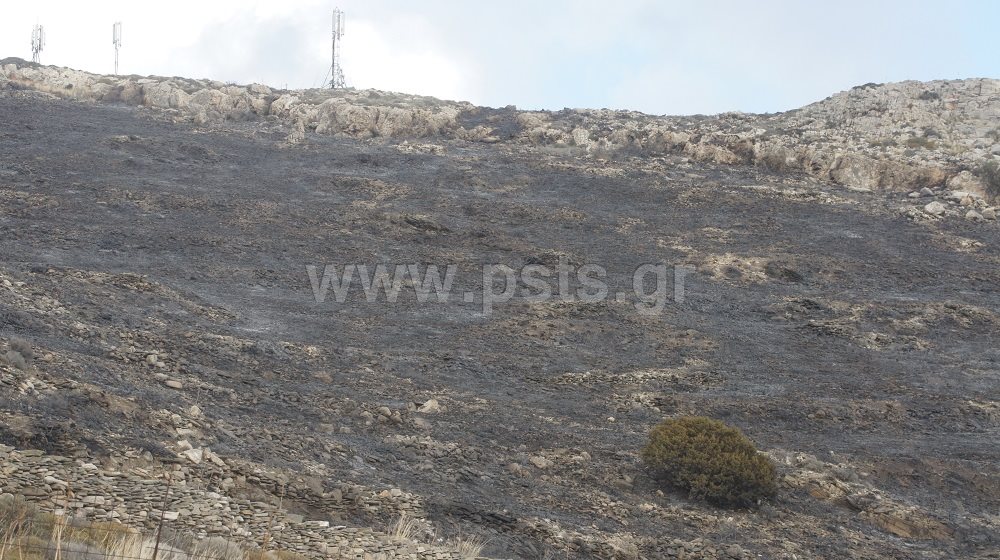 Η φωτιά που μέσα σε λίγες ώρες τέθηκε υπό έλεγχο χάρη στην έγκαιρη επέμβαση των ανδρών της πυροσβεστικής υπηρεσίας και της Ελληνικής Ομάδας Διάσωσης, κατέκαψε τελικά τις θαμνώδεις εκτάσεις του μεγαλύτερου μέρους της πλαγιάς του λόφου και αυτό που αντικρίζει κανείς σήμερα, την επόμενη μέρα της καταστροφής είναι στάχτες και αποκαΐδια.