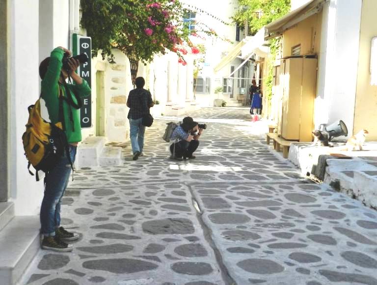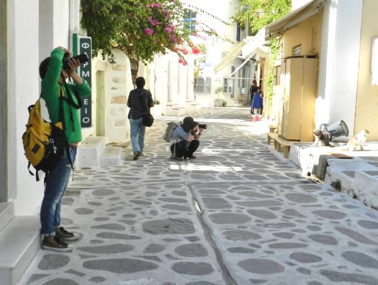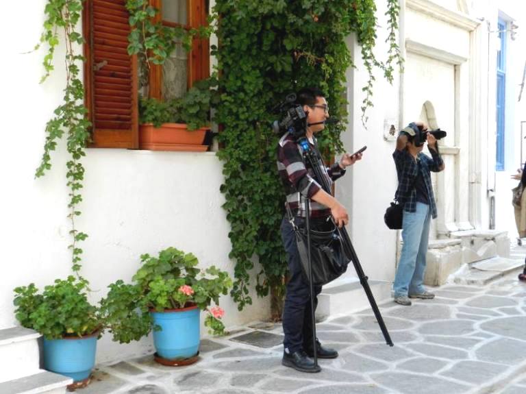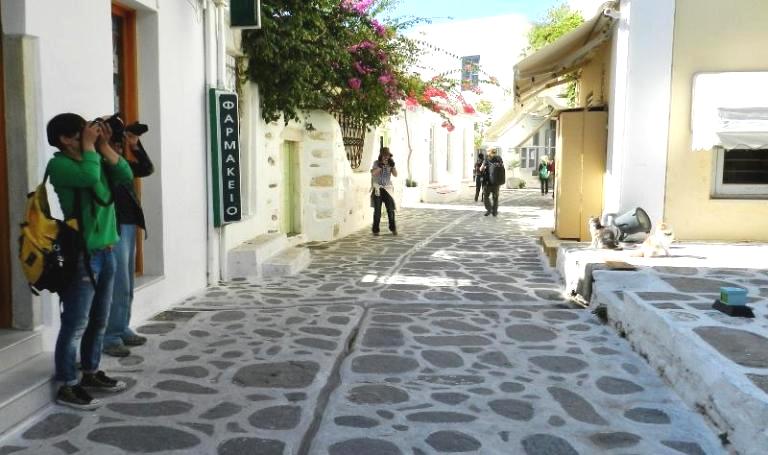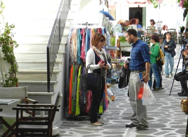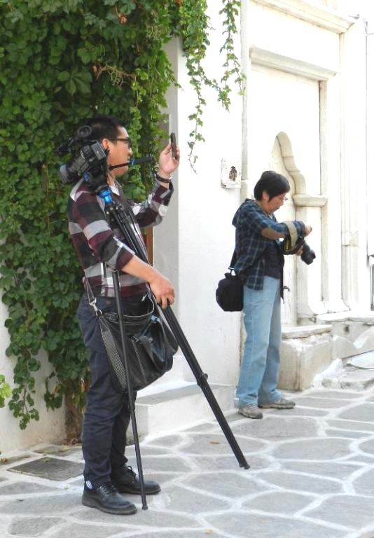 Ο φωτογραφικός φακός της Μαρίας - Γωγώ Ραγκούση εντόπισε το τηλεοπτικό συνεργείο και την πρόεδρο της τουριστικής ανάπτυξης του Δήμου Πάρου Μαρία Χανιώτη σήμερα το μεσημέρι στα σοκάκια της παραδοσιακής αγοράς της Παροικιάς...