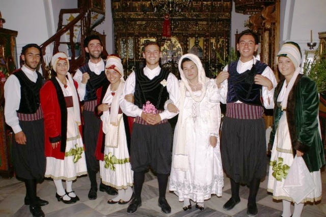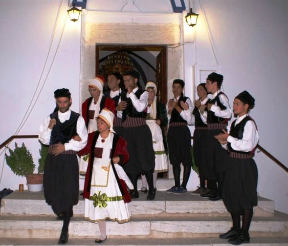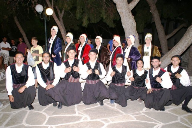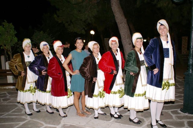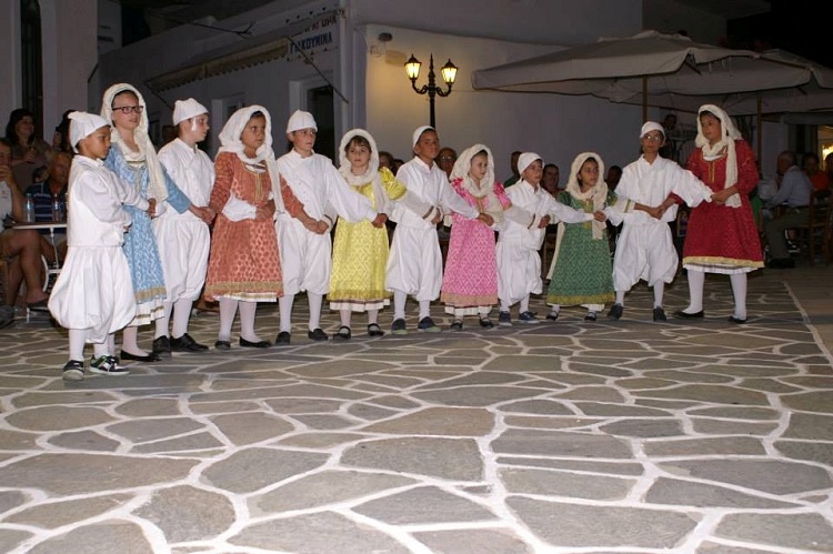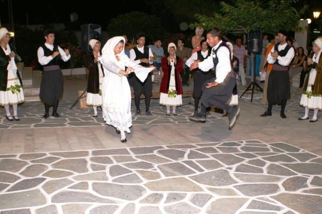 Τρεις χορευτικές Ομάδες παρουσίασαν χορούς και έθιμα της Σαλαμίνας, της Εύβοιας και της Πάρου, δίνοντας έμφαση σε αναπαράσταση μέρους του παριανού γάμου αξιοποιώντας το εξαιρετικό φυσικό «σκηνικό» της πλατείας του χωριού.