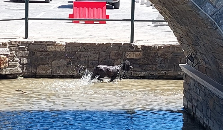 Το γλυκό τετράποδο, έδειξε να ενθουσιάζεται με το νερό κάτω από τη γέφυρα και να επιδίδεται σε παιχνίδια δίχως τέλος, ακούραστο και γεμάτο ενέργεια.