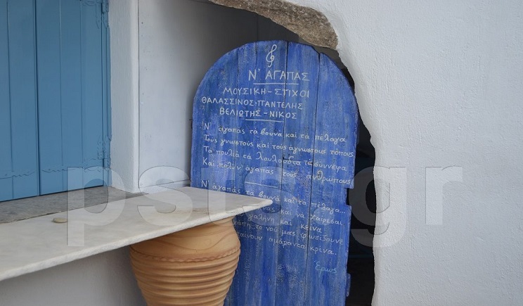 Πάνω σε παλαιές συνήθως πόρτες, σε ερειπωμένους τοίχους, σε παραθυρόφυλλα, σε αυλές, ποιητικοί στίχοι του Κάλβου, του Καββαδία, του Σεφέρη, του Ελύτη, του Ρίτσου, του Γκάτσου, του Βάρναλη, οι οποίοι υμνούν τον έρωτα, τον ήλιο, τη θάλασσα, το φως και το Αιγαίο, είναι αποτυπωμένοι σε κοινή θέα εκπλήσσοντας ευχάριστα τους επισκέπτες του χωριού! Μια μοναδική πραγματικά σύγχρονη εικαστική παρέμβαση η οποία δίνει πνοή ζωντάνιας στον παραδοσιακό χαρακτήρα του οικισμού και ξεκλειδώνει ευαισθησίες που αγγίζουν την ψυχή!